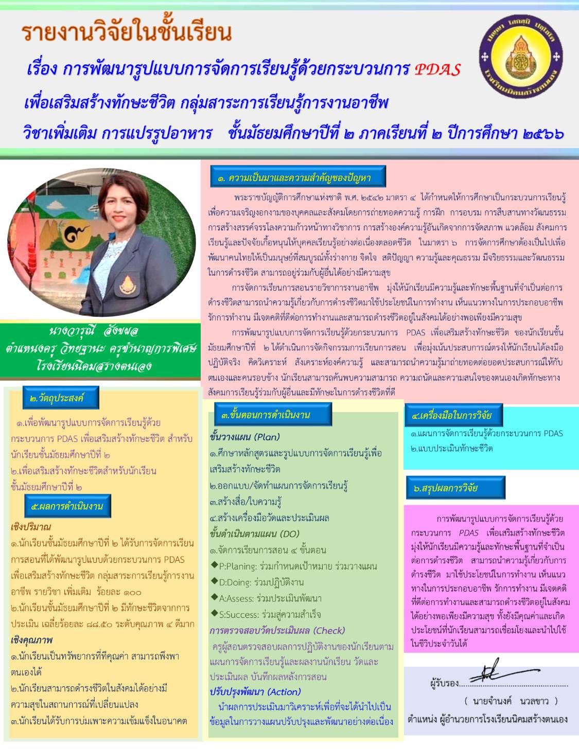 การพัฒนารูปแบบการจัดการเรียนรู้ด้วยกระบวนการเรียนรู้ที่เน้นทักษะการปฏิบัติงาน PDAS